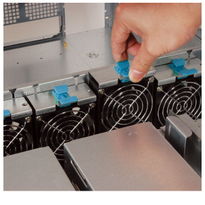 Middle: 4x 80 mm (T=32mm) hot swap middle fans Rear: Optional : 2 x 80mm (T=25mm) rear fans |